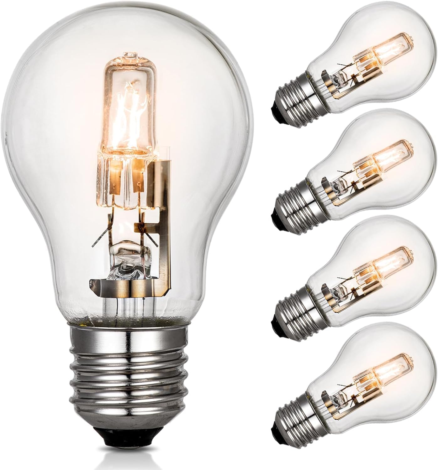 E27 Halogen Light Bulb 42W Dimmable, Edison Screw Cap 2700K Warm White, Energy Saving Light Bulbs, 624LM 220-240V, Pack of 5